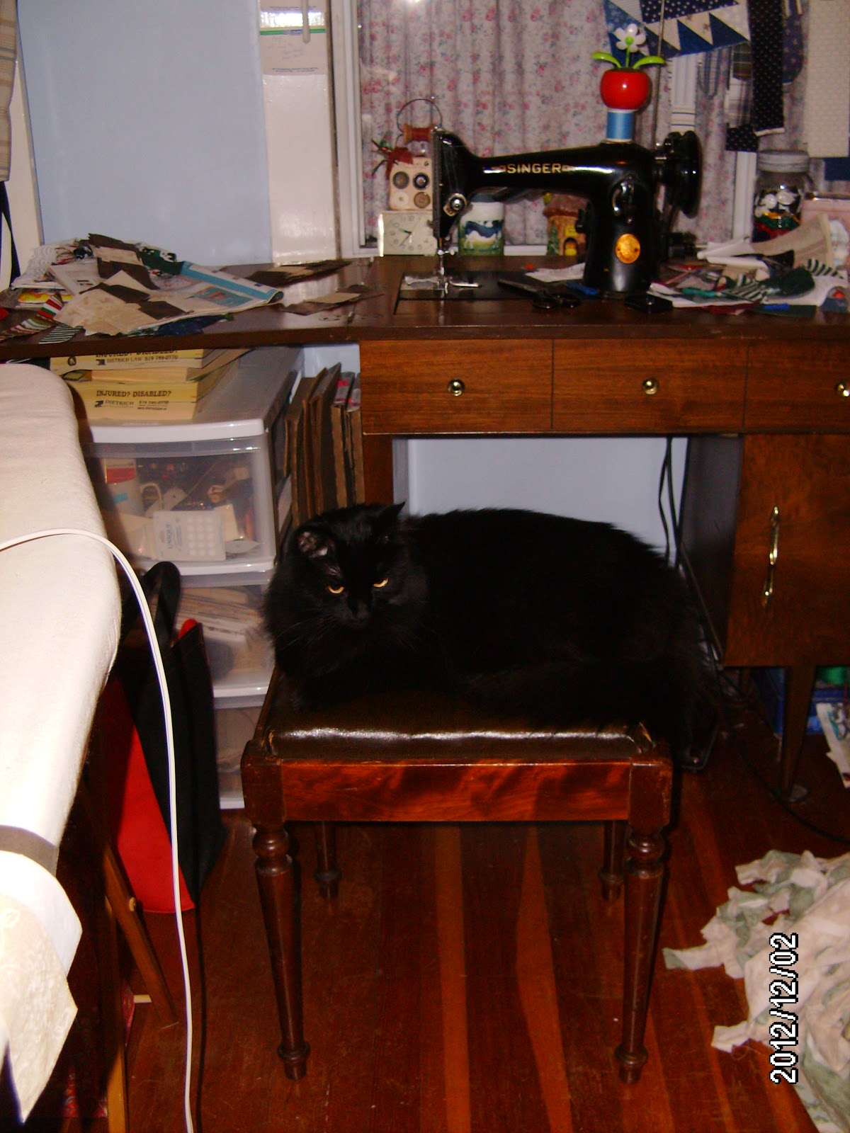 So Gram ~ Keep the other 2 rotten female cats busy in your sewing room, and I'll chill on the Christmas quilt in the living room...thank you!!!